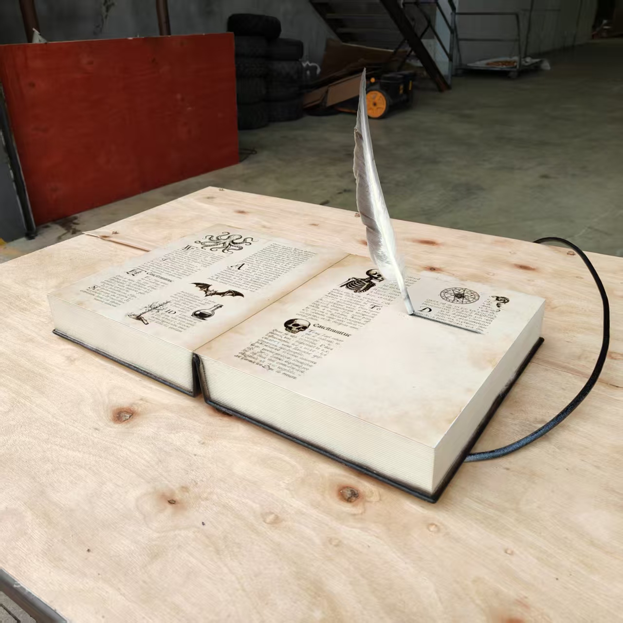 Picture a spellbook that comes alive: when visitors lean in, the feather quill floats and rotates gently once plugged in—as if a ghostly wizard is scribbling secret incantations right before their eyes. This isn’t just a piece of decor; it’s a plug-in interactive magic prop tailor-made for themed exhibitions, wizard parks, and immersive events, designed to turn every corner of your venue into a spot of wonder.